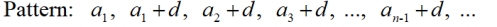Pattern: a, (a + d), (a + 2d), (a + 3d), ... where a is the first term. |