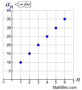in function notation: f (1) = 10; f (n)= f (n - 1)+ 5 |