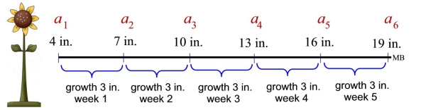 you get the WRONG answer. an = 4 + 3 (n - 1) = 4 + 3(5 - 1) = 16 inches. NOPE!
