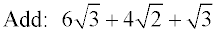 Notice that this problem mixes cube roots with a square root. The same type of approach is used to add cube roots as is used to add square roots, however the cube roots and square roots cannot be combined with one another through addition.