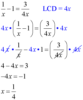 5. Check to be sure the answer is not a value that caused a zero denominator in the original equation. |