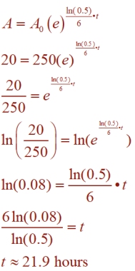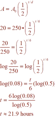 (discrete decay: Solve using A = A0 • (1/2) t / d )