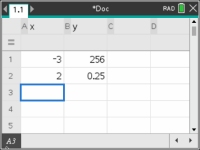 The table at the right shows values from an exponential function.