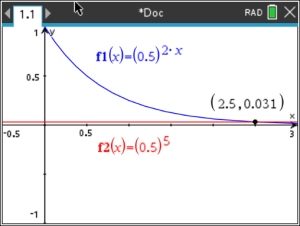 • The base 0.5 is in the interval 0 < x < 1, so "reverse the direction" of the inequality.