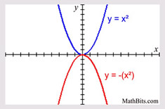 Remember: for y = ax2 + bx + c, negative "a" opens down.
