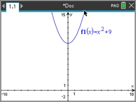 For example, the graph of y = x2 + 9 lies completely above the x-axis. having only positive values for y.