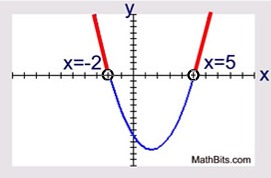 Roots are -2 and 5. These root values become "critical" values to solving the inequality.