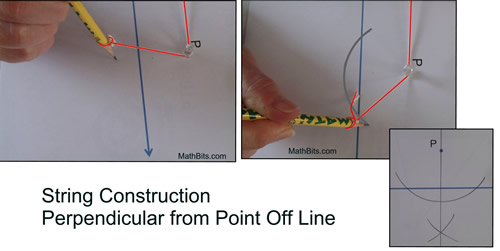 The constructions below are samples of constructions using string. The steps to perform these constructions are the same as those followed when using a compass and straightedge.