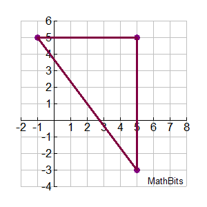 The vertices of a triangle are located at (-1,5), (5,5) and (5,-3). The length of the hypotenuse is 4 more than the length of the shorter leg. Find the number units in the perimeter of the triangle.