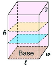 to the height (h) of the figure, creating the formula V = B • h, with B the area of the base and h = height. |